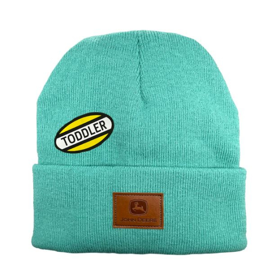 John Deere kids’ beanies with premium faux leather patch