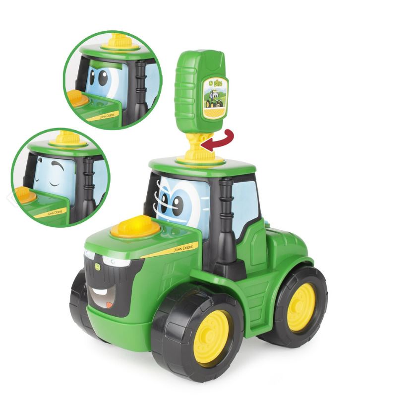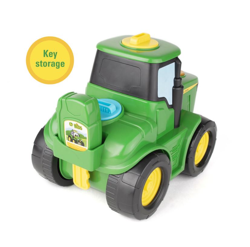 Unlock hours of imaginative fun with the John Deere Key-n-Go Johnny Tractor—the interactive toy that lets little farmers “start” their very own tractor! With 15 engaging features, this learning toy encourages curiosity, cause-and-effect understanding, and hands-on exploration. Kids insert the key into different colour slots to activate unique reactions: real tractor sounds, expressive spinning eyes, lights, and four fun driving patterns.