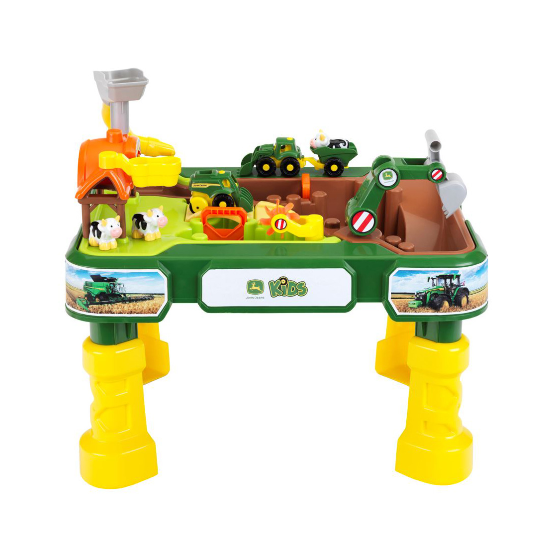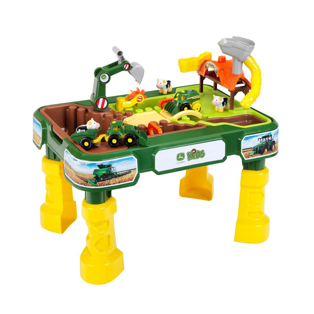 ransform your garden, patio, or playroom into a bustling agricultural hub with the John Deere Farm Sand & Water Play Table. Designed for toddlers aged 18 months and over, this sturdy play station combines the messy fun of sand and water with the iconic world of John Deere farming.