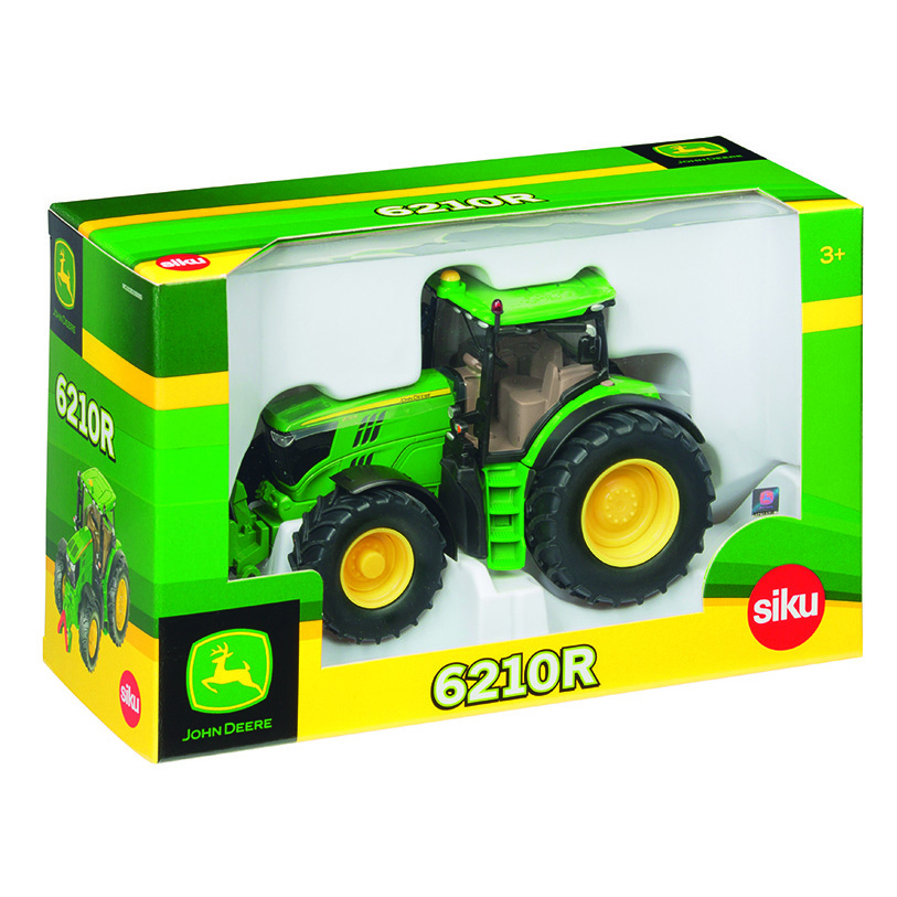 The SIKU 3282 John Deere 6210R Tractor has a detachable cab, so kids can seat drivers or set up workshop scenes.