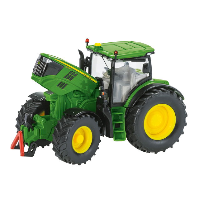 The SIKU 3282 John Deere 6210R Tractor includes an opening bonnet that reveals engine detail for close-up play.