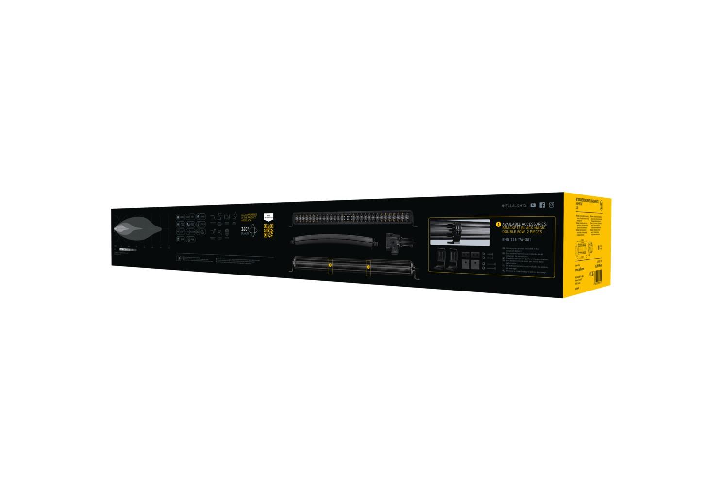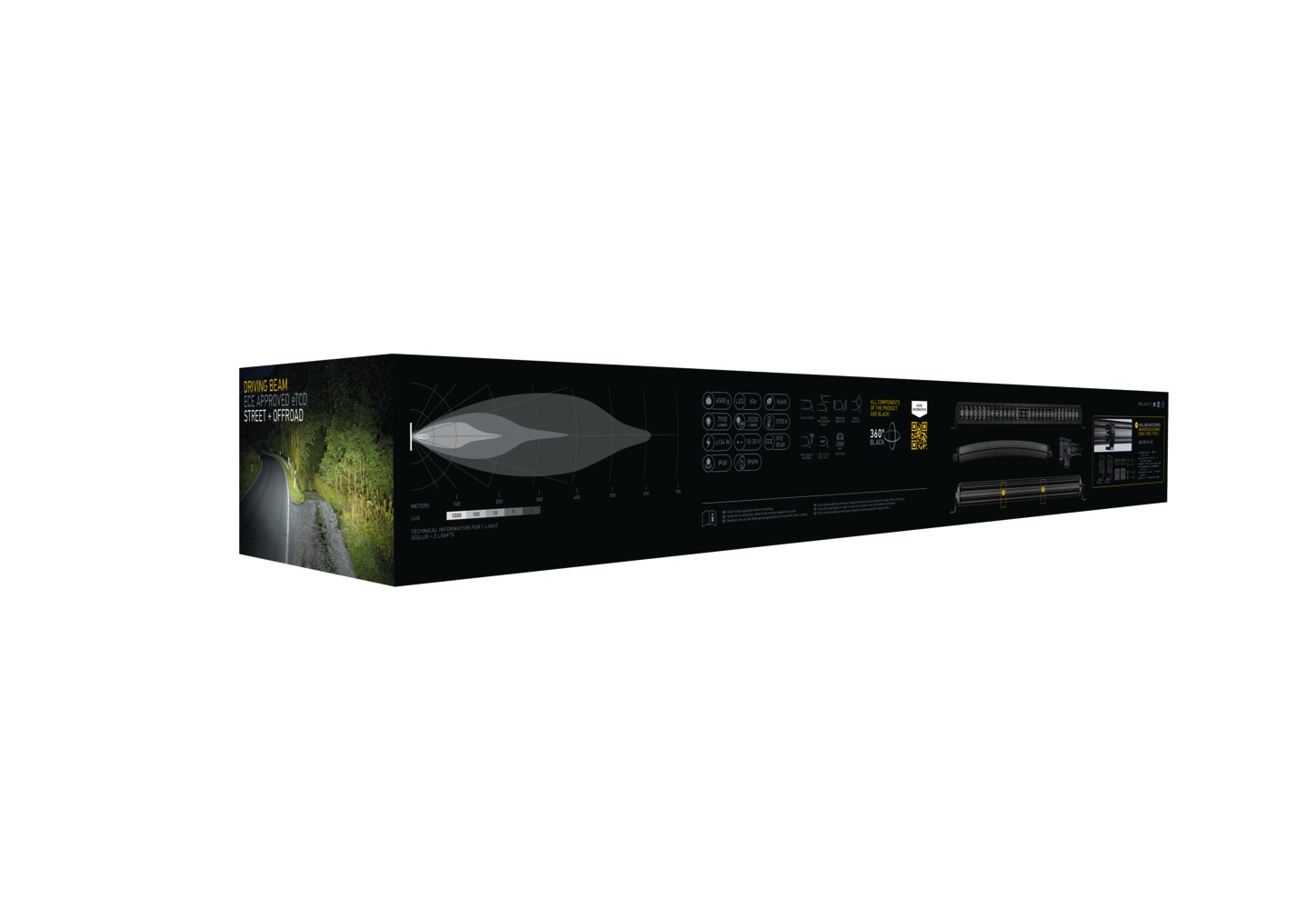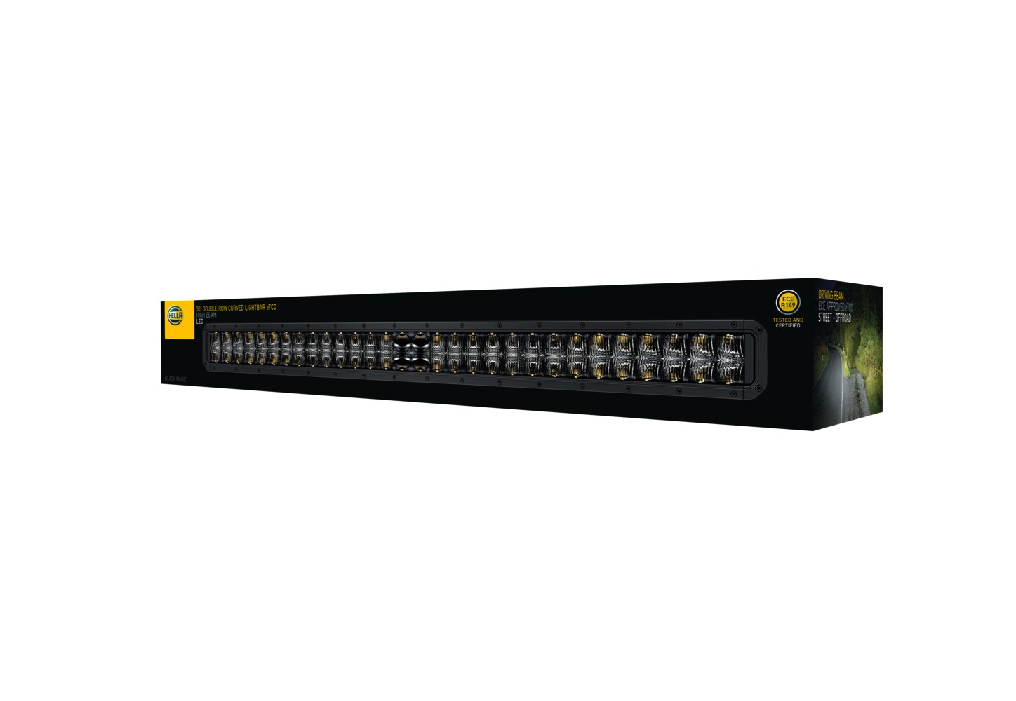 The ECE type-approved HELLA Black Magic Lightbars provide high beam (ECE-R149) with a very powerful light output of up to 9,200 effective lumens, ideal for off-road situations where you need it most and for trucks that need really good light. Both the slim and double lightbars offer a high recognition effect with their stylish and robust look in an all-black design. Typical installation locations are on the roof or roof bar, the radiator grille or bumper. The product complies with the highest dust / waterproof class. The extra-long 2 m cable makes it easy to attach to your vehicle.