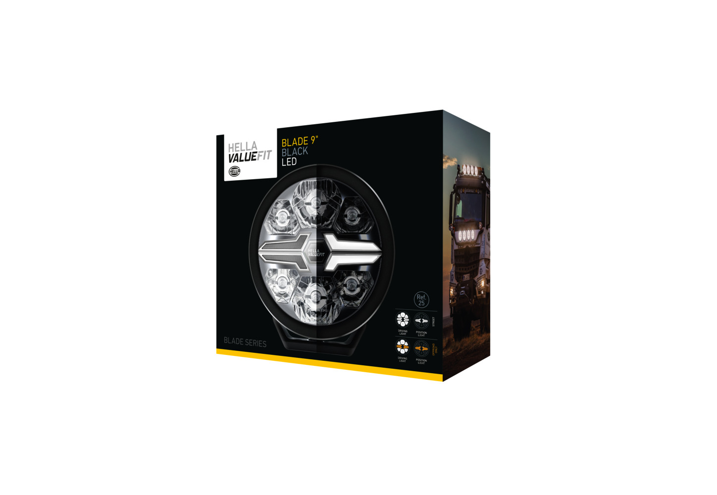 The powerful auxiliary headlights of the HELLA ValueFit Blade series make a statement on any vehicle. The innovative design of the LED position light with razor-sharp contour supports the characteristic look of the new Blade series. The colour of the position light is optionally white or yellow. The robust auxiliary headlights are characterised by a high-quality look. The housing is made of aluminium and the holder of glass fibre (PAA + GF). Multivoltage: suitable for 12 V and 24 V nominal voltage.