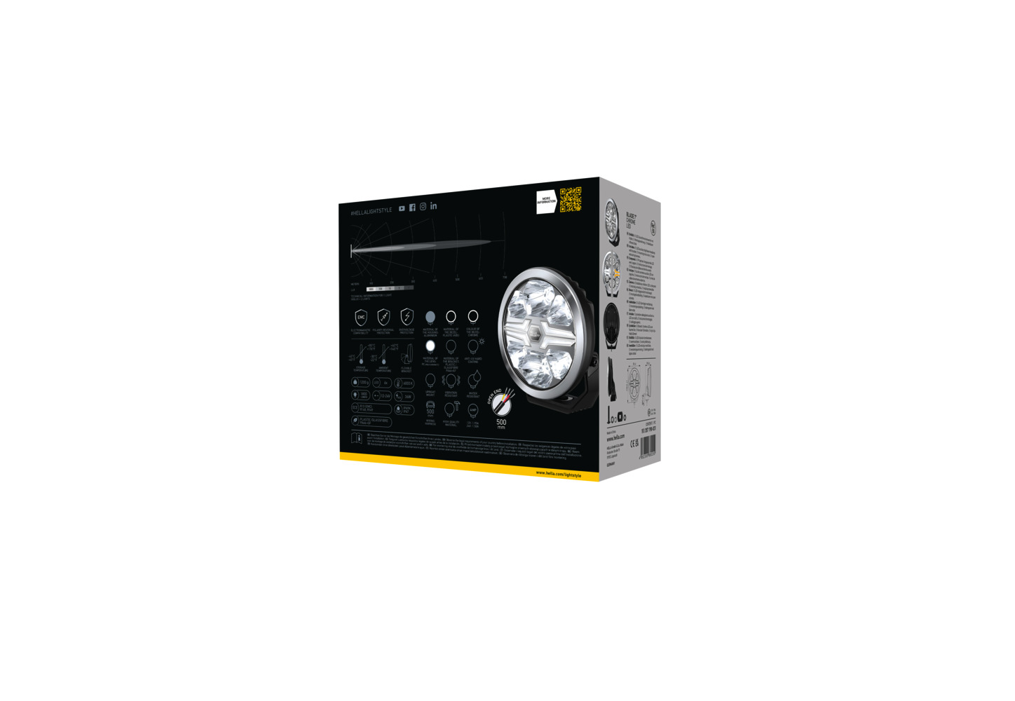 - High-quality robust auxiliary headlamp with aluminium housing and holder made of glass fibre (PA66 + GF). The low mounting depth of 95 mm allows flexible mounting in numerous mounting positions.