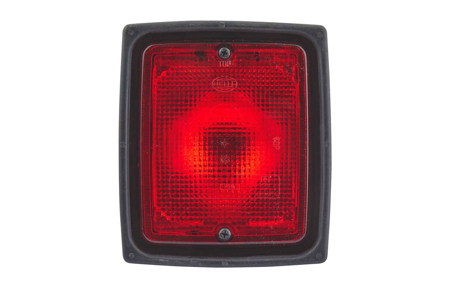 - Lamp type: P21W, without bulbs, for surface mounting: 2 fixing screws M8, for installation: 4 holes for fixing screws, installation depth approx. 45 mm, black rubber housing