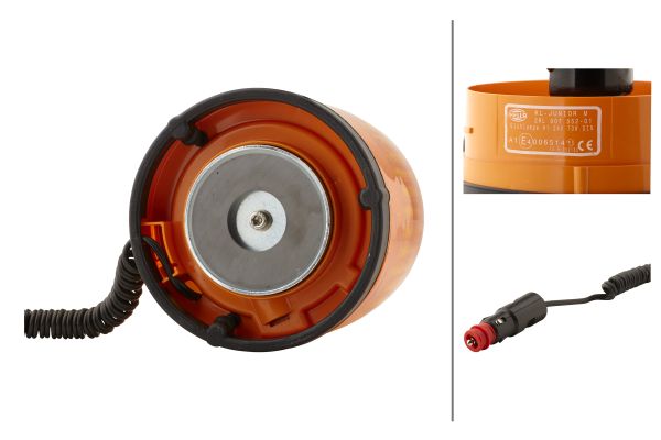 HELLA 2RL 007 552-011 Halogen-Rotating Beacon – KL Junior – 24V – yellow (amber) – Magnet Mount – Cable: 3500mm – Plug: DIN ISO 4165