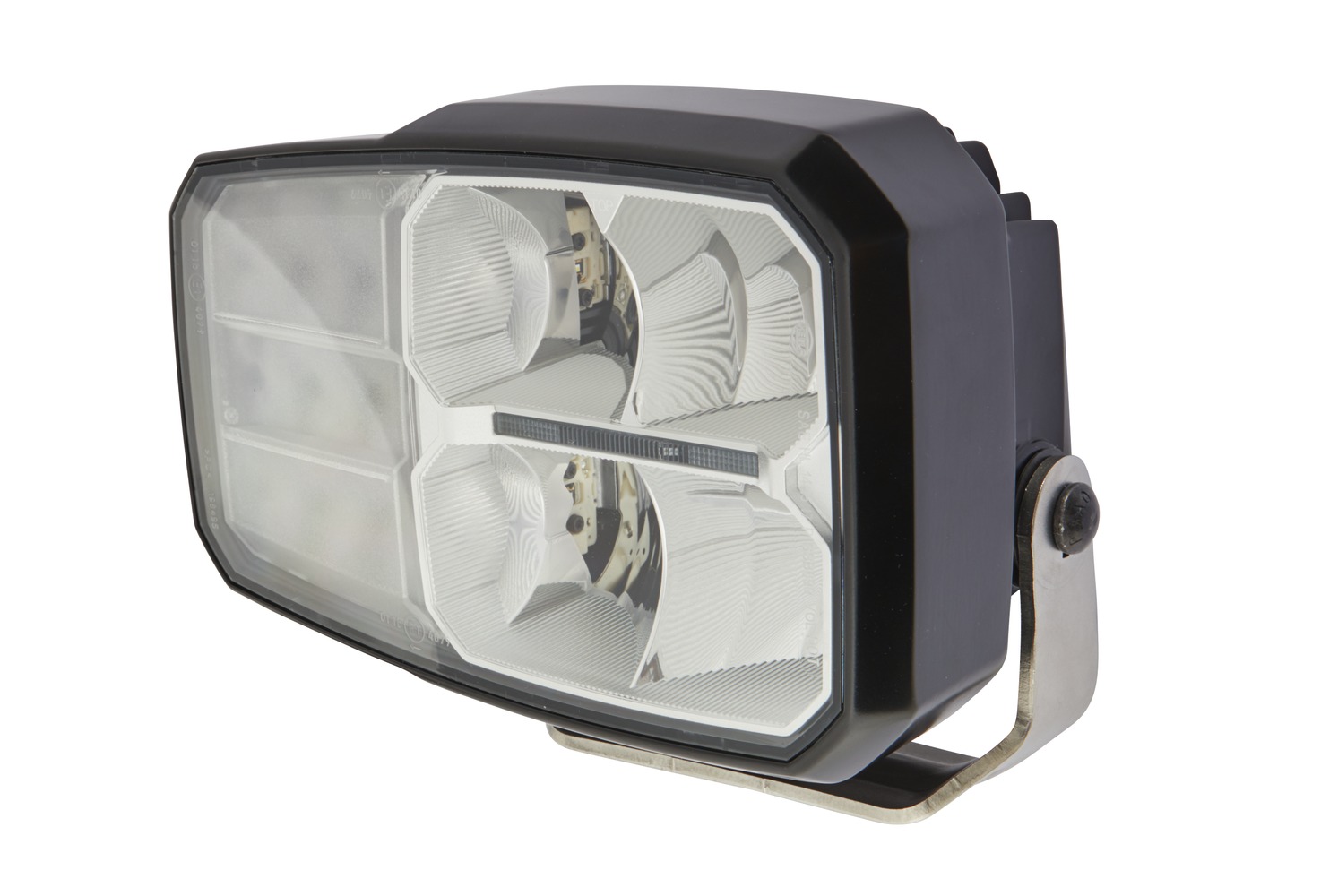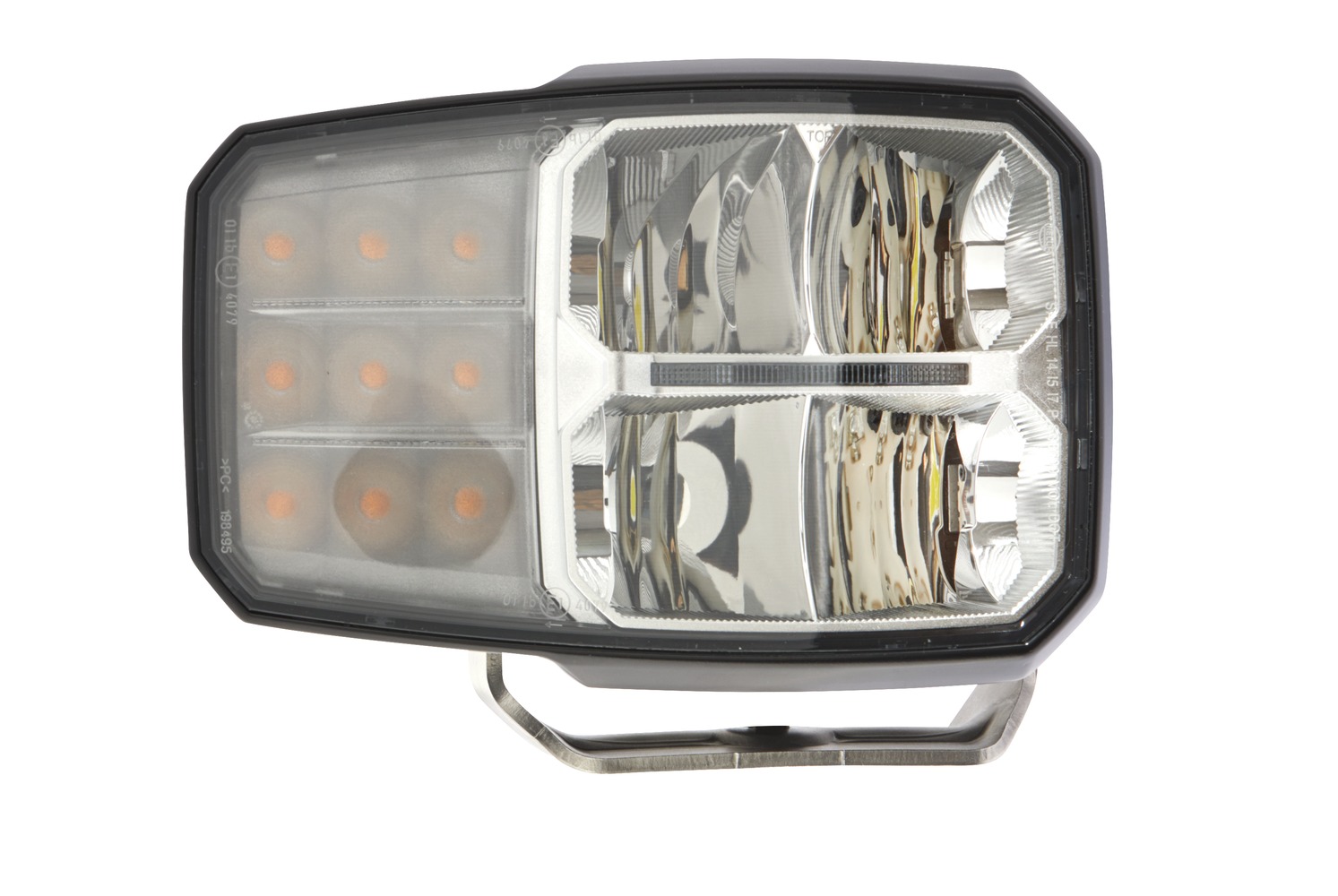 The C140 LED is the first combination headlight on the market to feature all light functions in LED technology: low beam, high beam, indicator and position light (as LED light guide). The special freeform reflector together with the LED light source produces significantly better light than headlights with halogen bulbs. With its daylight colour, the light appears far brighter to the eye and makes working at night less tiring. The housing of the C140 LED is made of aluminum and features cooling fins on its rear, which ensure heat removal from the high-power LEDs. A specially developed thermal design with temperature sensors prevents the headlight from overheating. With its robust, heavy-duty bracket and a lens made of toughened, shatterproof plastic, the headlight is particularly resistant to vibration and impact. Ideal for the tough conditions on construction vehicles (strong vibrations, dust, wetness, mechanical shock, etc.). The LED technology enables a lifetime of over 20,000 hours. The C140 LED headlight is a fully sealed, maintenance-free system: it obviates the need to replace bulbs, saving time and money for the final consumer. The low LED power consumption compared to conventional halogen headlights also saves fuel, further driving down costs. The C140 LED meets all ECE and SAE requirements and is both approvable and ideal for use almost anywhere in the world. Additional approvals are required for use in China.