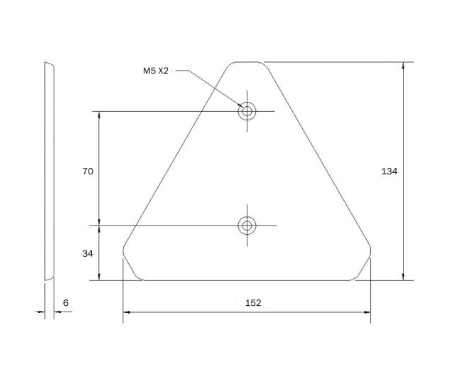 The Model 171 Triangular Reflex Reflector is a high-visibility safety reflector designed for trailer applications. Featuring a classic triangular shape, this reflector provides clear rear visibility and complies with standard trailer safety requirements.