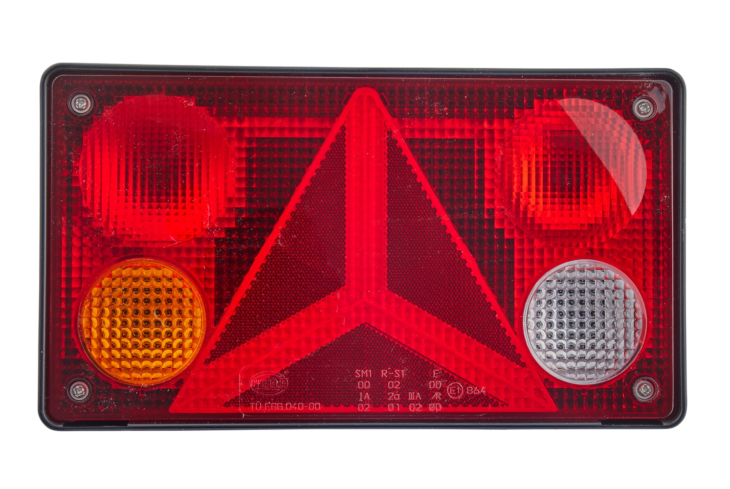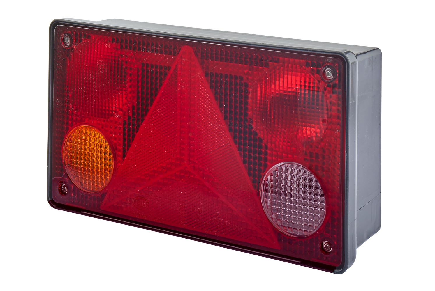 • Tail-triangular reflector-stop-indicator-fog-reverse side marker-reflector lamp for horizontal mounting on trailers (left) – with ECE approval, ADR/GGVS-tested