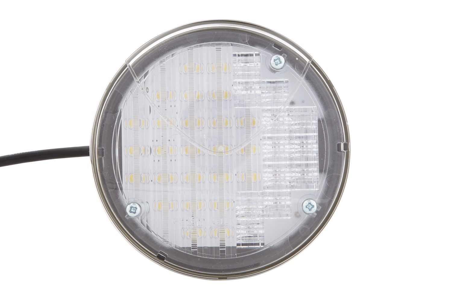 - With 37 LEDs and encapsulated 500 mm cable with open ends, with 2 fixed fixing screws M6 x 25, housing made of black plastic, lens crystal clear