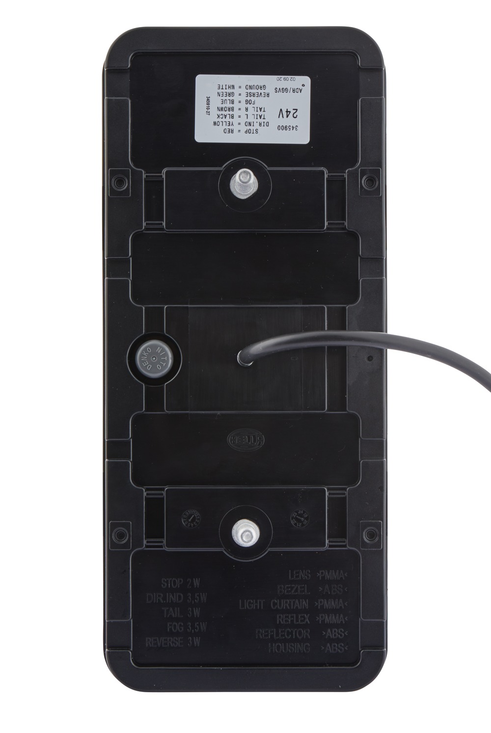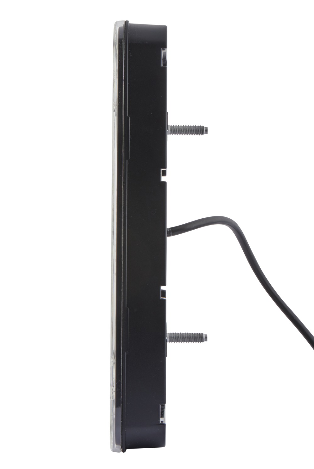 „COLUNA“ full LED combination rear lamp with 5 light functions for 12 V and 24 V towing vehicles and trailers. All light functions of the full LED combination rear lamp (tail light, stop light, direction indicator, rear fog lamp and backup lamp) exclusively feature LED technology. The tail light is produced by a ground-breaking patent-registered flat LED light guide in combination with the reflex reflector. And this light guide succeeds in producing illumination which is especially homogeneous. As a result, the tail light function, with its large surface area of around 145 cm², is exceptionally visible in the dark and thus enhances road safety. 12 V and 24 V variants of this extremely flat surface-mounted full LED light are available for towing vehicles and trailers. A range of different applications on the vehicle are possible using EasyConn or AMP connectors and the front or rear fixing options.