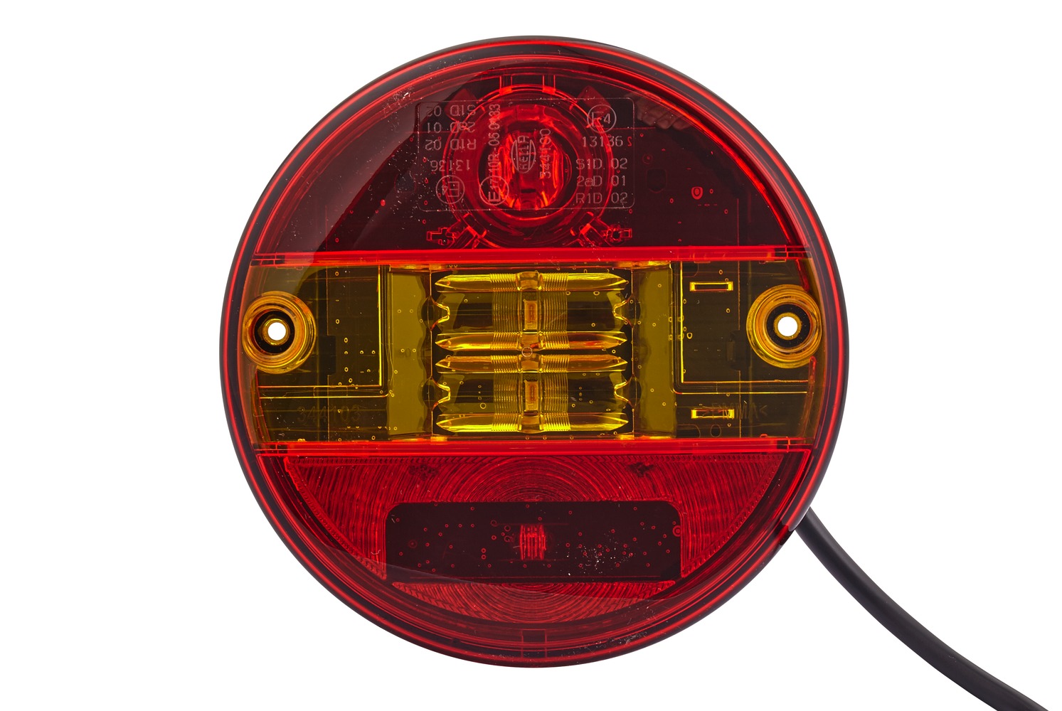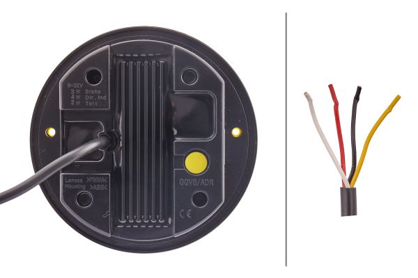 - With 4 LEDs, with 500 mm cable and 2 holes for fixing screws ST 4, housing made of black plastic, lens red/yellow with glass-clear additional lens