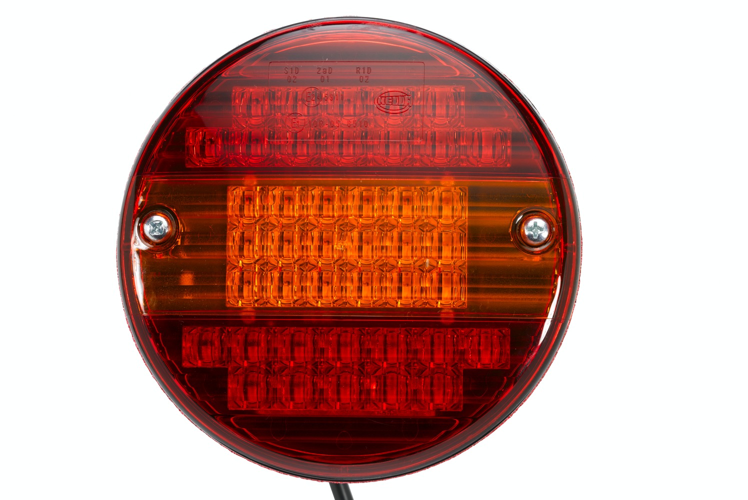 • With 42 LEDs, with 2,000 mm cable and 4-pole AMP Superseal plug-in connection, tail light: 0.5 W, brake light: 2.0 W, flashing light: 3.0 W, black plastic housing, 2 fixing screws M6