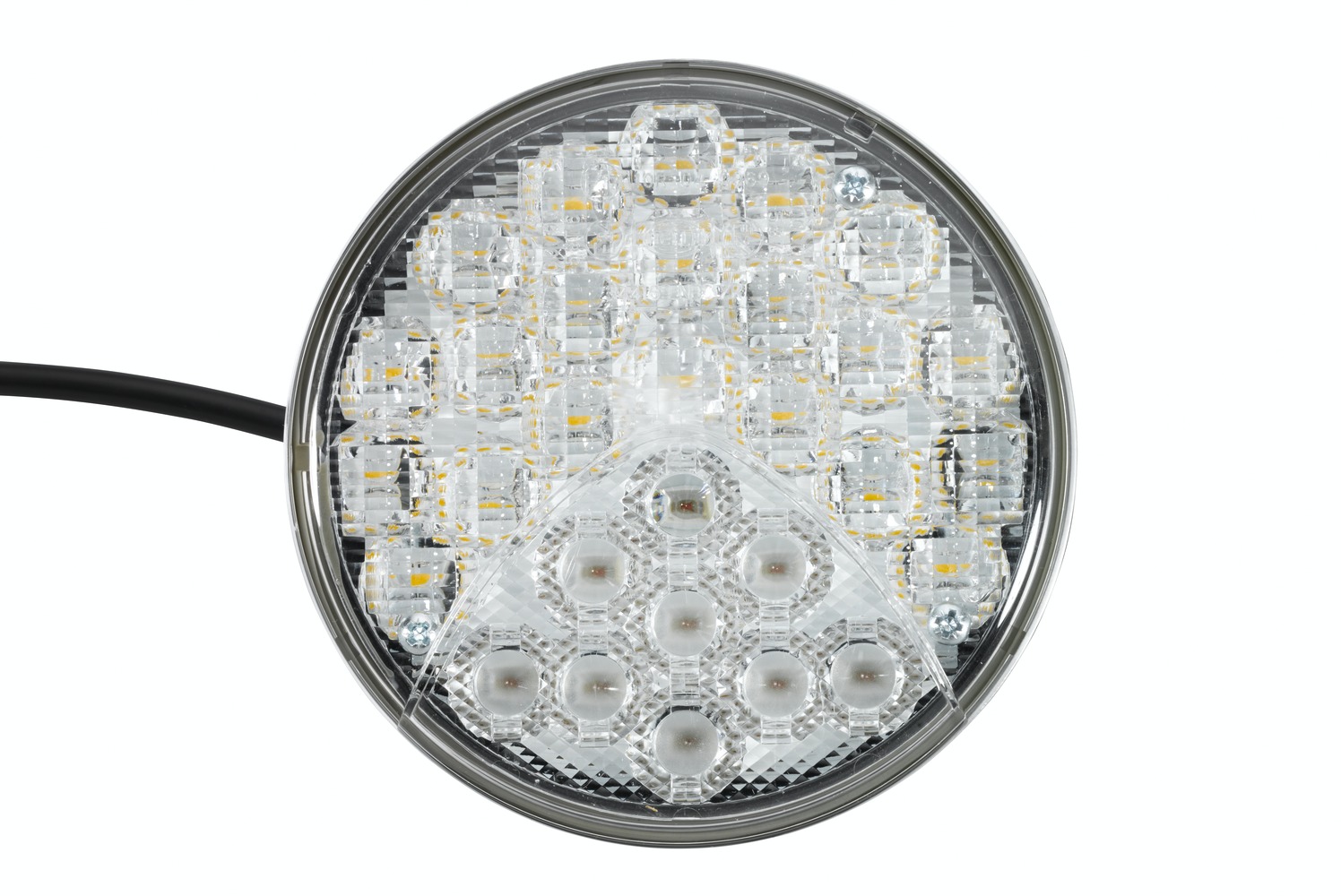 - With 9 red LEDs for rear fog light, 21 white LEDs for reversing light and moulded 500 mm cable with open ends, with 2 fixed fixing screws M6 x 20, housing made of black plastic