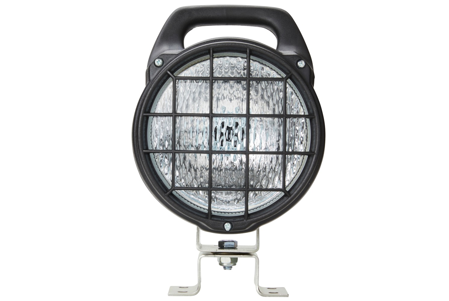 - The bracket enables a stable four-point mounting of the worklight.