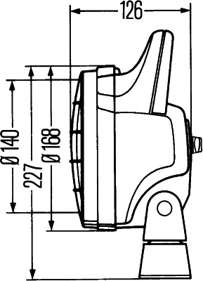 Together with the special honeycomb pattern in the diffusing lens, the parabolic reflector enables homogeneous illumination of the working field at close range. The light source is an H3 bulb (not included in all versions). The worklight can be used (depending on the bulb) with both 12V and 24V on-board voltage. The black housing of this robust worklight is made of glass-fibre reinforced plastic. To protect the diffusing lens, the housing is provided with a protruding rim at its front. The handle, together with the swivel foot, simplifies the adjustment of the work lights so that the working area can be optimally illuminated. The bracket enables a stable four-point attachment of the worklight. The cable entry is sealed by a grommet. Depending on the version, the Matador offers additional advantages such as rotary switches (for versions -001 and -031) or protective grids (for versions -031 and -051). Article 1G4 003 470-141 is only suitable for vertical mounting, as the power connection is made via an easily detachable pipe socket that fits onto push-on tubes (Ø 24 mm) for beacons.