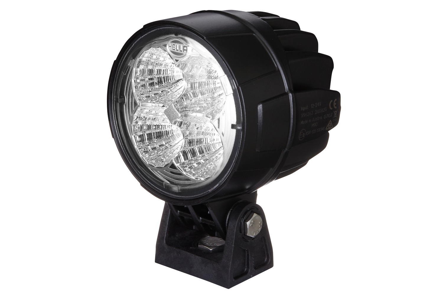 The Module 90 LED is a robust worklight with a universal, attractive design. The black aluminium housing has cooling fins that provide the necessary heat dissipation for the four high-performance LEDs. In addition, temperature sensors protect the worklight from overheating. This is the only way to ensure the long service life of the LEDs and safe working at night. Thanks to its powerful light output of 3,800 lumens, the Module 90 LED can replace xenon worklights – with a power consumption of only 36 watts. This makes the worklight ideal for use on vehicles with battery operation as well as vehicles whose alternator is already heavily loaded. The light is distributed with a specially developed multi-facet reflector and ensures homogeneous illumination. The spotlight can be operated with either 12 or 24 volts. The integrated electronics protect the unit in the event of reverse polarity and ensures constant brightness even with a fluctuating operating voltage of 9 to 32 volts. With a colour temperature of 6,500 Kelvin, the light of the LED worklight is similar to daylight. This has the effect of distinguishing colours more clearly in the dark, making sensory perception much easier for the human eye.