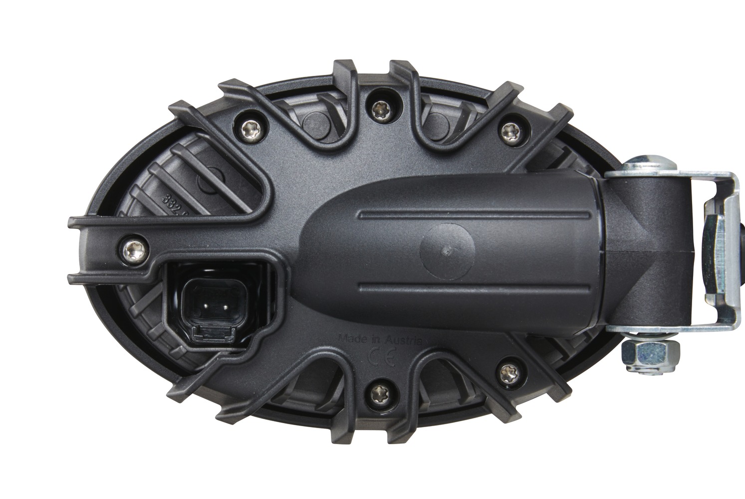 The Oval 100 LED Thermo Pro is the latest version of the already extensive Oval 100 worklight series. The new innovative plastic housing offers complete corrosion resistance as well as many new mounting options. For the first time, the Oval 100 LED is also available with a lateral swivel joint attachment, which offers additional adjustment options for mounting. The heat-conducting plastic housing has cooling fins on the back to ensure the necessary heat dissipation of the 8 high-power LEDs. Thanks to its light output of 1,700 lumens, the Oval 100 LED is ideal for replacing old halogen worklights (H3, H9) – and that with only 25 watts of energy consumption. The specially developed multi-faceted reflector guarantees homogeneous illumination of the working area. The Oval 100 LED Thermo Pro can be mounted upright (0°), suspended (180°) and in the swivel joint version also sideways (90°). At 6,500 Kelvin, the light is similar to daylight. This causes colours to distinguish themselves more clearly in the dark than in the yellowish light of halogen bulbs, making it much easier for the human eye to perceive the senses and prevent eye fatigue. The plastic housing is hermetically sealed and thus watertight, submersible and resistant to high-pressure cleaning (IP6K9K, IP6K8). The integrated electronics protect the unit in case of reverse polarity and ensure constant brightness even with fluctuating operating voltages from 9 to 33 volts. Temperature sensors protect the worklight from overheating to ensure a long service life of the LEDs and safe working at night.