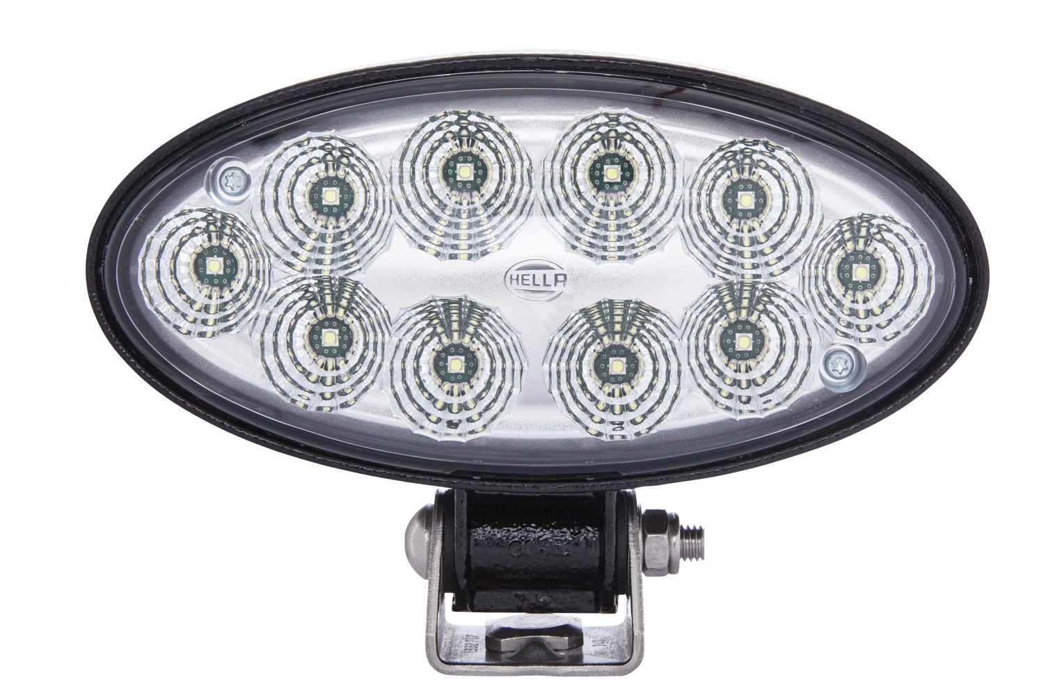 The Oval 90 from HELLA is a compact worklight with a modern, attractive design. The product range of the Oval 90 worklights includes halogen and xenon versions. The modular series is expanded with the Oval 90 LED to include efficient LED technology. The spotlight can be operated with either 12 or 24 volts. The integrated electronics protect the unit in the event of reverse polarity and ensure constant brightness even with a fluctuating operating voltage of 9 to 32 volts. Thanks to its powerful light output, the Oval 90 LED can replace standard halogen worklights (e.g. H3 / 55 watts) – with a power consumption of only 28 watts. The light is distributed with a specially developed multi-facet reflector and ensures homogeneous illumination. The Oval 90 LED can be mounted either upright (0°) or suspended (180°). The light of the LED worklight is very similar to daylight. This causes colours to distinguish more clearly in the dark than in the yellowish light of halogen bulbs, making it easier for the human eye to perceive the senses and prevent rapid eye fatigue. The worklights’ black housing is made of aluminium and has cooling fins ensuring the necessary heat dissipation of the 10 high-performance LEDs. In addition, a sensor protects the worklight from overheating. Only in this way can the long life of the LEDs (up to 130 times the life of a halogen bulb) be fully exploited. The integrated electronics are protected against reverse polarity and equipped with an LED fault bypass.