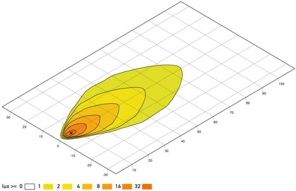 - The light output is a powerful 2,000 lumen. The light is distributed by a specially developed multi-facetted reflector and ensures homogeneous illumination.