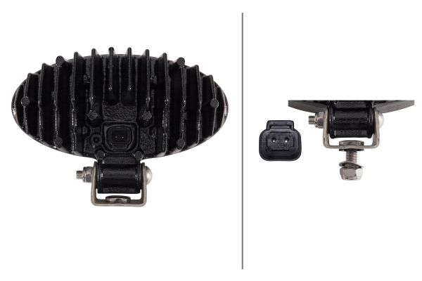 The Oval 90 LED Gen. 2 from HELLA is a compact worklight with a modern, attractive design. The Oval 90 worklight product range includes halogen, xenon and LED variants. The modular series is completed with the Oval 90 LED Gen. 2 whih has been expanded to include a powerful worklight with LED technology. The spotlight can be operated with either 12 or 24 volts. The integrated electronics protect the unit in the event of reverse polarity and ensure constant brightness even with a fluctuating operating voltage of 9 to 32 volts. The light output is a powerful 5,000 lumens. The light is distributed with a specially developed multi-facet reflector and ensures homogeneous illumination. The Oval 90 LED Gen. 2 can be mounted either upright (0°) or suspended (180°). The light of the LED worklight is very similar to daylight. This causes colours to distinguish more clearly in the dark than in the yellowish light of halogen bulbs, making it easier for the human eye to perceive the senses and prevent rapid eye fatigue. The worklights’ black housing is made of aluminium and has cooling fins ensuring the necessary heat dissipation of the 10 high-performance LEDs. In addition, a sensor protects the worklight from overheating. Only in this way can the long life of the LEDs (up to 130 times the life of a halogen bulb) be fully exploited. The integrated electronics are protected against reverse polarity and equipped with an LED fault bypass.