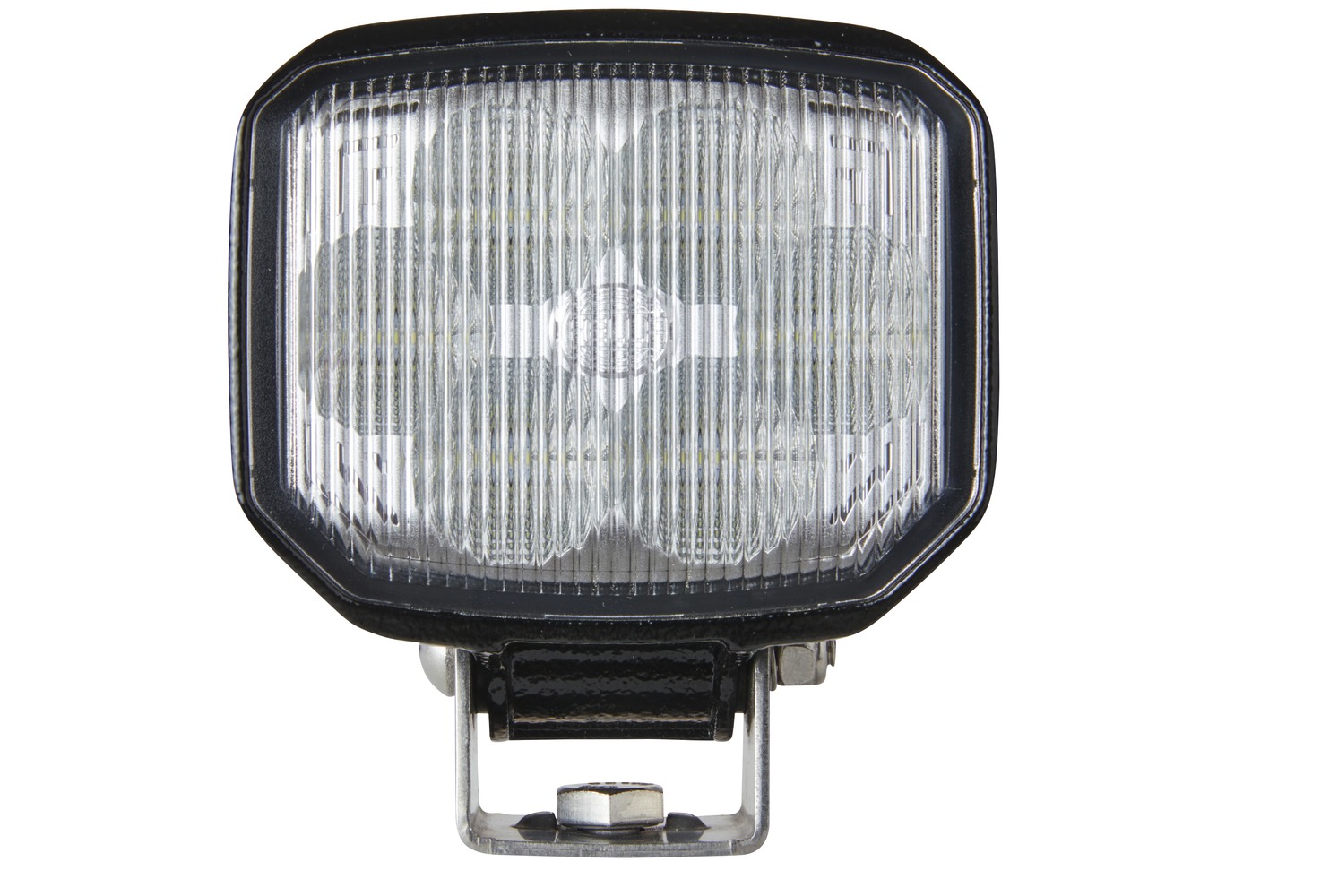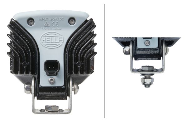 The Power Beam 1500 is an ideal LED worklight that combines powerful light output in a practical design. The worklight is designed to be universally applicable due to its compact dimensions. The light of the 6 high-power LEDs is homogeneously distributed in the working area by a specially developed multi-facet reflector. Thanks to its powerful light output, the Power Beam 1500 can replace standard halogen worklights (e.g. H3 / 55 watts) – with a power consumption of only 22 watts. This makes the worklight ideal for use on vehicles with battery operation and also, where the alternator is already heavily loaded. The spotlight can be operated with either 12 or 24 volts. The integrated electronics are protected against reverse polarity and equipped with an LED fault bypass. This ensures the function of the worklight even in the unlikely event of an LED failure. With a colour temperature of 5,700 Kelvin, the light of the LED worklight is similar to daylight. This has the effect of distinguishing colours more clearly in the dark, making sensory perception much easier for the human eye. Working at night is thus made easier and rapid eye fatigue is prevented. The black housing of this worklight is made of aluminium and has cooling fins. These ensure the necessary heat dissipation of the 6 high-performance LEDs. In addition, a temperature sensor protects the worklight from overheating. Only in this way can the long service life of the LEDs be fully exploited. The plastic part at the back acts as a handle to tilt the worklight into the right position.